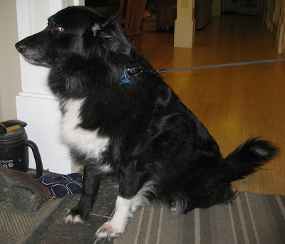 This is Scaredy-Dog. She is much better after a few years of no abuse, but she is still a bit skittish around men. She is a very good dog, though. And pretty too.